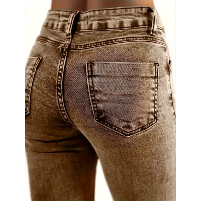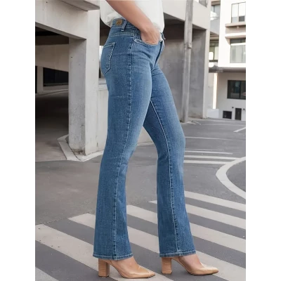 Women's Slim Leg Stretch Flare Jeans with Star Print & Net Splicing - Mid-Stretch Denim, Machine Washable, All-Season Casual Pants (Belt Not Included), Versatile Denim | Medium Elasticity