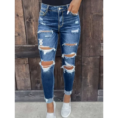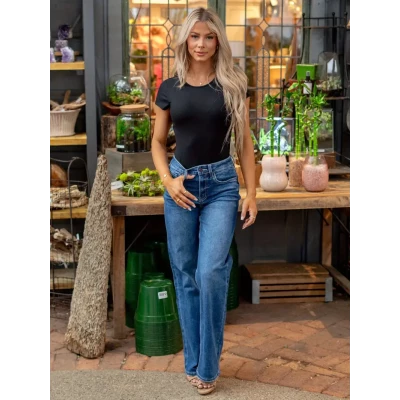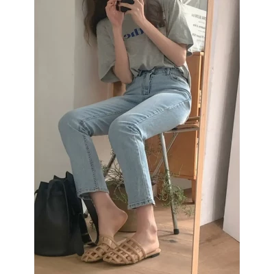 2025 New Women's High-Waisted Straight-Leg Jeans - Vintage Washed Dark Blue Denim, Slim Fit with Built-In Zipper Closure, Machine Washable Casual Pants for All-Season Versatile Style